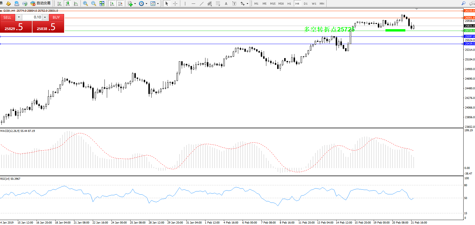 美国股市周四收盘下跌,近期涨势暂竭,受累于美国经济数据疲弱,而医疗保健类股下跌加剧偏空动能。道琼斯工业平均指数收跌103.81点,跌幅0.40%,报25850.63点。美国12月耐用品订单不及预期,美元指数短线走低,徘徊日内低位附近;具体数据显示,美国12月耐用品订单增加1.2%,不及市场预期的1.8%,前值为1.0%;尽管增幅不及预期,但该数据仍录得连续两个月上升。