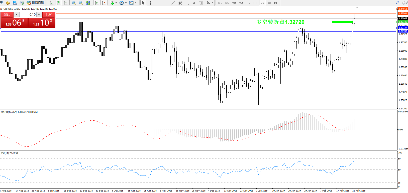 交易策略:1.32720上方看涨,目标1.33541、1.34011