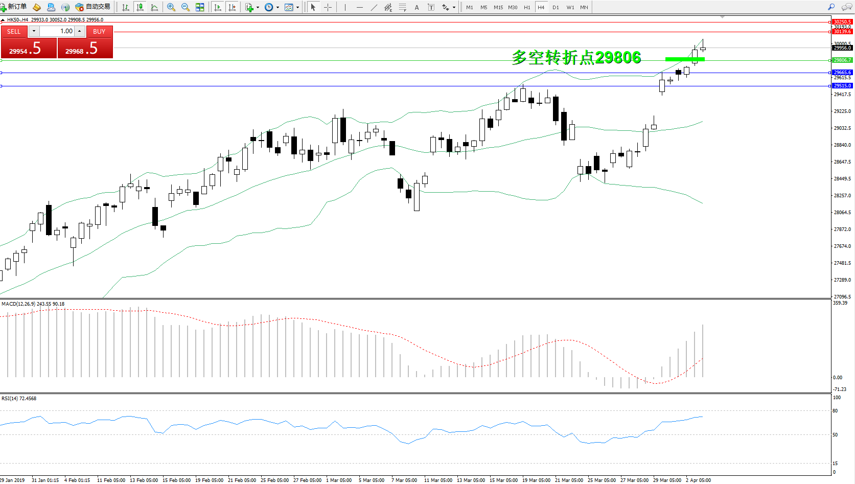 技术点评:多头延续布林带指标上轨拉升上行,高位正试图破位30000关键压制节点,MACD指标多头区域上扬走势良好,RSI指标多头区域进入80均衡线下方运行;