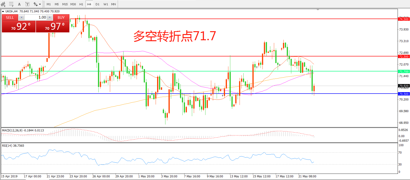 交易策略:在71.70之下看跌,目标70.50    68.50