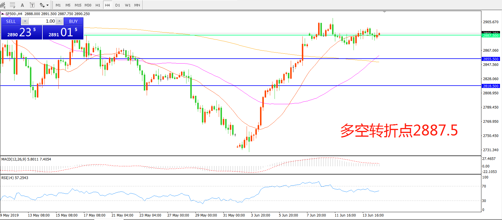 4小时图看,标普延续高位窄幅高位震荡走势,2887.5依然是短期争夺焦点,短期均线走平,MACD红柱减少,RSI指标走平,日内延续震荡思路概率较大。