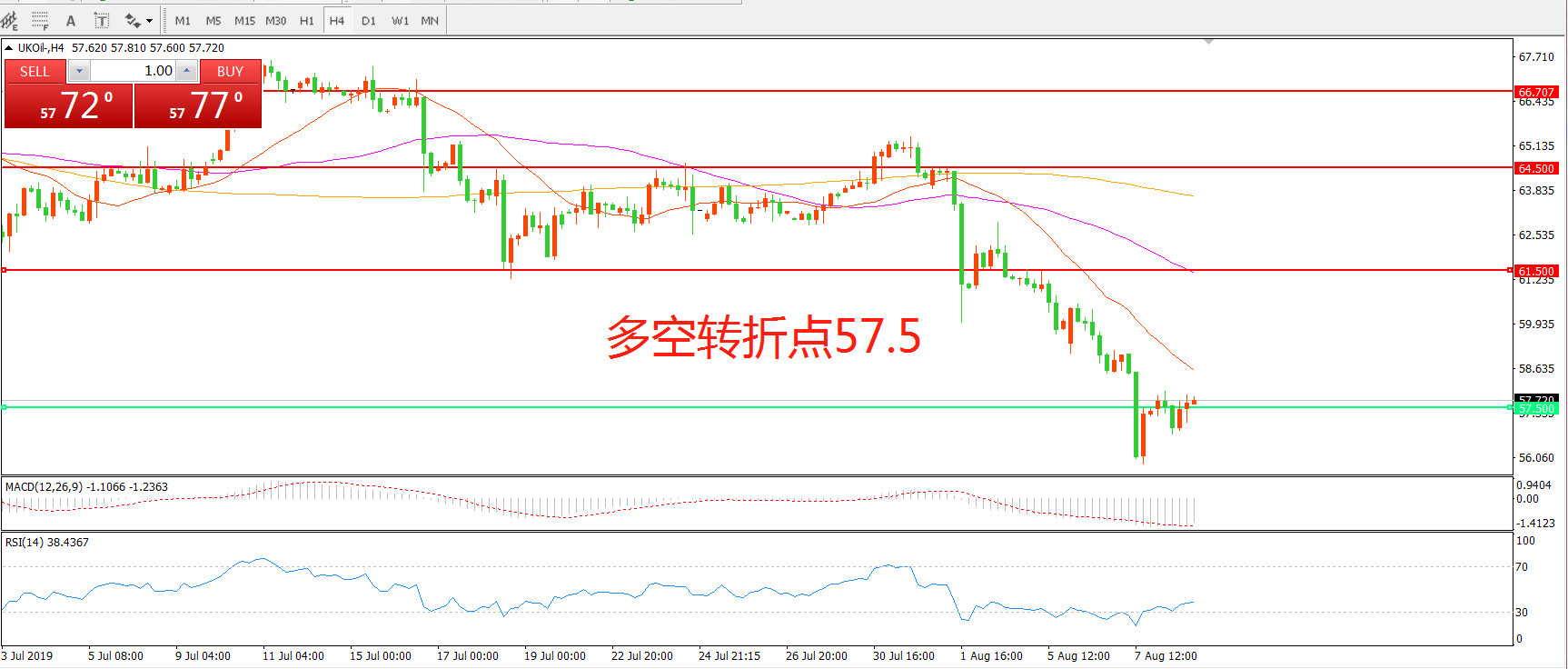 交易策略:在57.50之下看跌,目标53.00 50.00