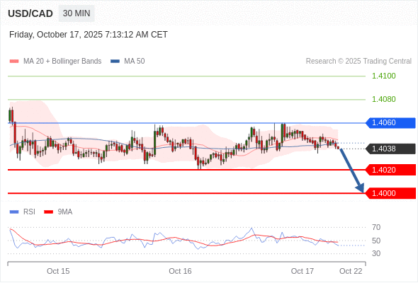 交易策略: 在 1.4060 之下,看跌,目标价位为 1.4020 ,然后为 1.4000 。