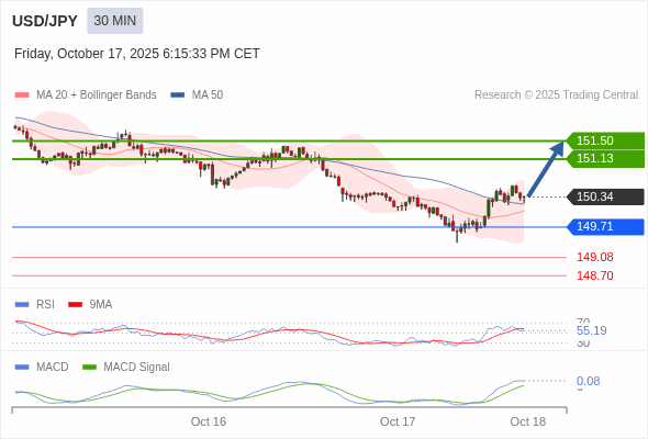 美元/日元 当日内 : 看涨,当 149.71 为支撑位。
