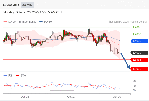 在 1.4035 之下,看跌,目标价位为 1.3995 ,然后为 1.3975 。