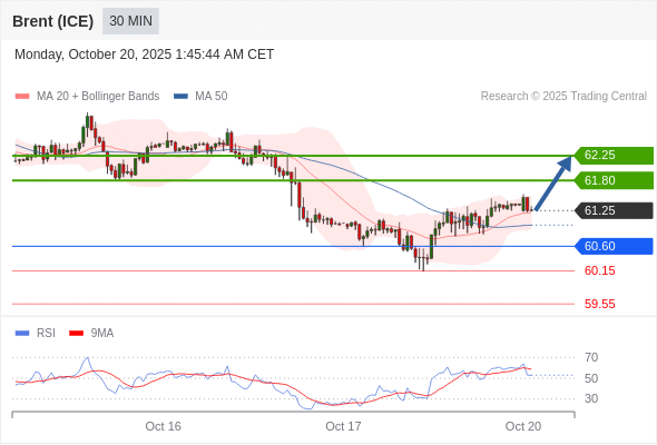 在 60.60 之上,看涨,目标价位为 61.80 ,然后为 62.25 。