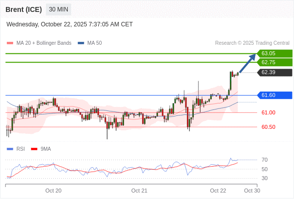 在 61.60 之上,看涨,目标价位为 62.75 ,然后为 63.05 。