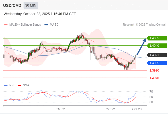 在 1.4005 之上,看涨,目标价位为 1.4040 ,然后为 1.4055 。