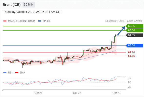 在 63.00 之上,看涨,目标价位为 65.00 ,然后为 65.55 。