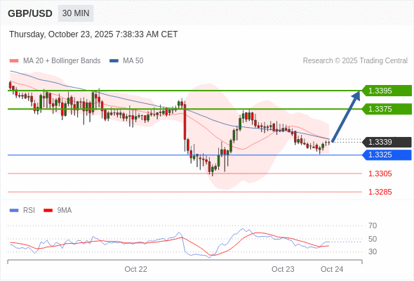 在 1.3325 之上,看涨,目标价位为 1.3375 ,然后为 1.3395 。