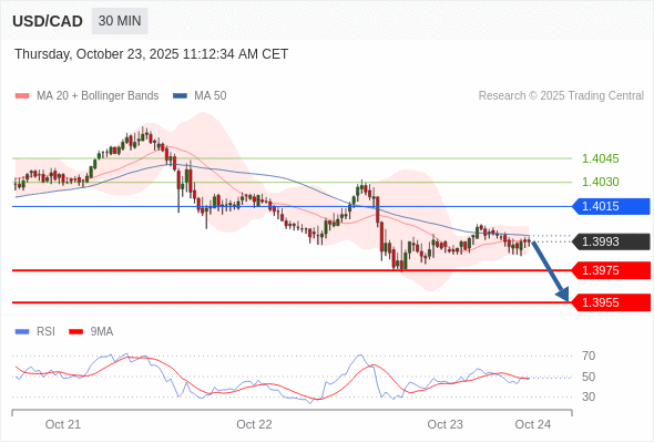 在 1.4015 之下,看跌,目标价位为 1.3975 ,然后为 1.3955 。