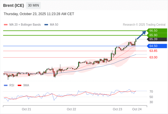 在 64.50 之上,看涨,目标价位为 65.90 ,然后为 66.50 。