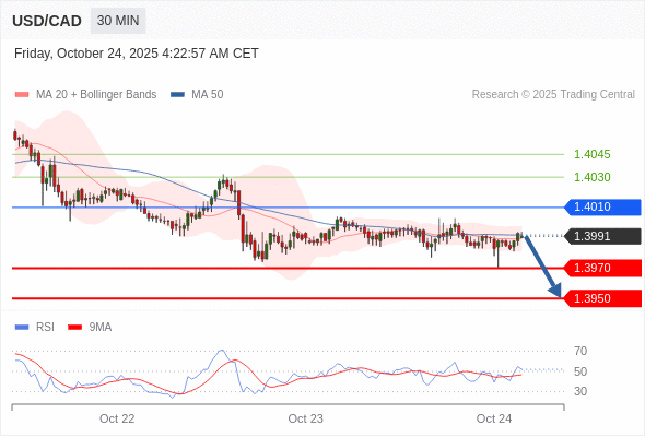 在 1.4010 之下,看跌,目标价位为 1.3970 ,然后为 1.3950 。