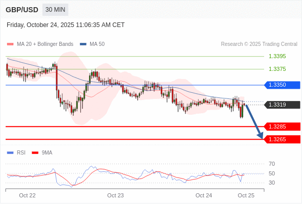 在 1.3350 之下,看跌,目标价位为 1.3285 ,然后为 1.3265 。