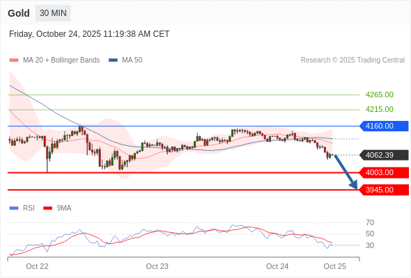 交易策略: 在 4160.00 之下,看跌,目标价位为 4003.00 ,然后为 3945.00 。