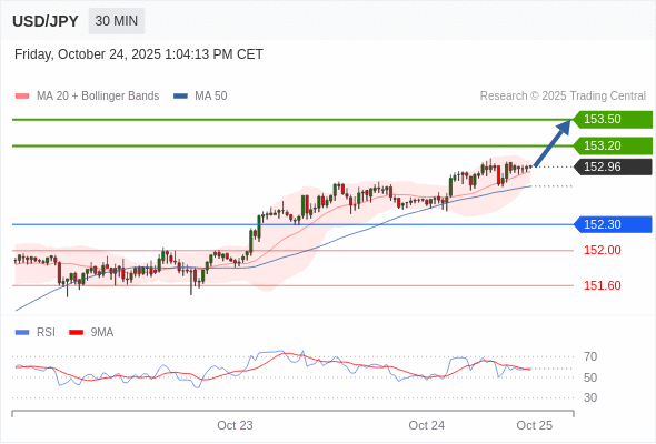 在 152.30 之上,看涨,目标价位为 153.20 ,然后为 153.50 。