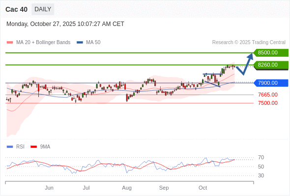 在 7900.00 之上,看涨,目标价位为 8260.00 ,然后为 8500.00 。