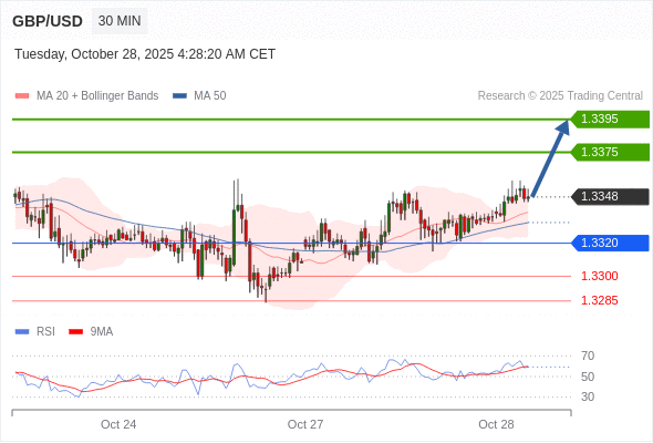 在 1.3320 之上,看涨,目标价位为 1.3375 ,然后为 1.3395 。