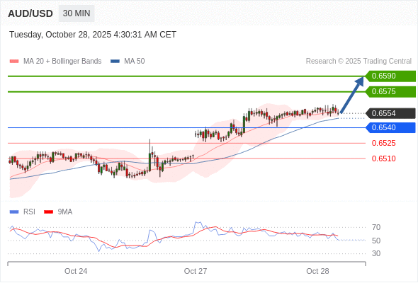 在 0.6540 之上,看涨,目标价位为 0.6575 ,然后为 0.6590 。