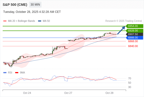 在 6888.00 之上,看涨,目标价位为 6928.00 ,然后为 6954.00 。