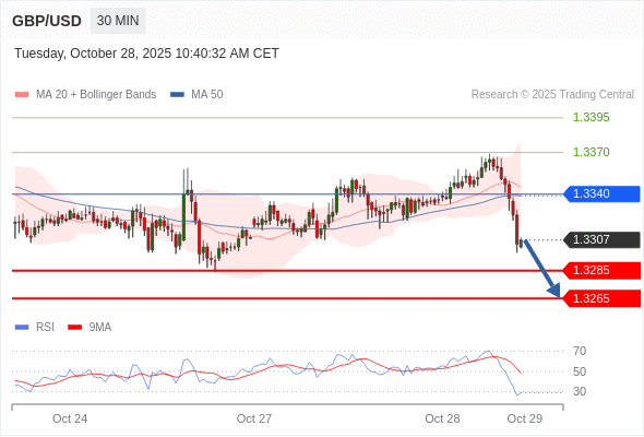 在 1.3340 之下,看跌,目标价位为 1.3285 ,然后为 1.3265 。