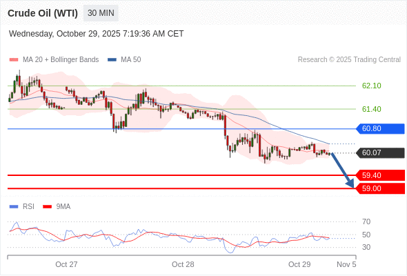 在 60.80 之下,看跌,目标价位为 59.40 ,然后为 59.00 。