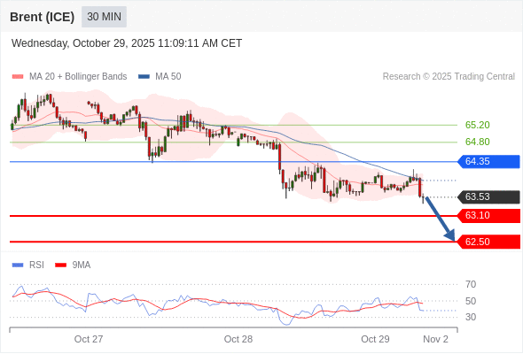 在 64.35 之下,看跌,目标价位为 63.10 ,然后为 62.50 。
