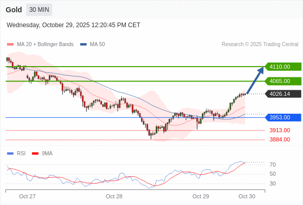 在 3953.00 之上,看涨,目标价位为 4065.00 ,然后为 4110.00 。