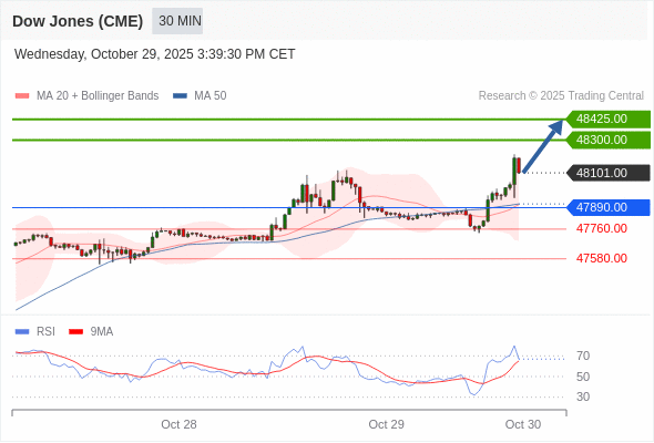 在 47890.00 之上,看涨,目标价位为 48300.00 ,然后为 48425.00 。