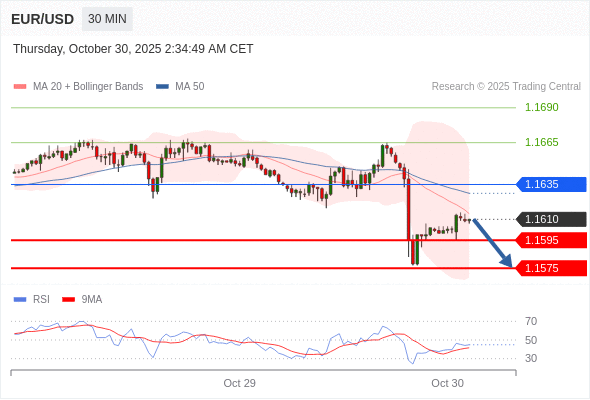 在 1.1635 之下,看跌,目标价位为 1.1595 ,然后为 1.1575 。