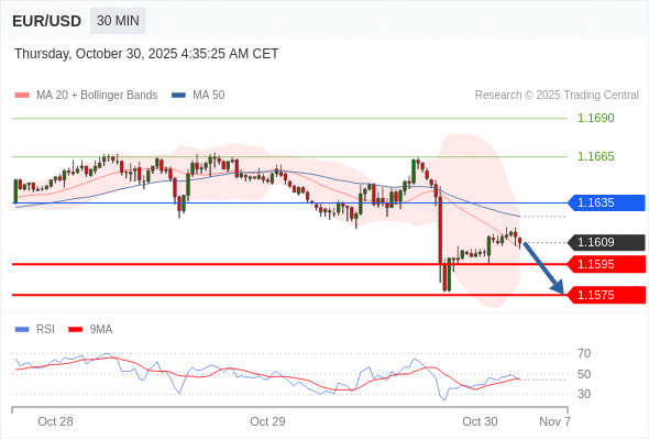 交易策略: 在 1.1635 之下,看跌,目标价位为 1.1595 ,然后为 1.1575 。