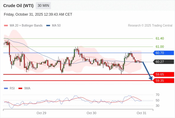在 60.70 之下,看跌,目标价位为 59.65 ,然后为 59.35 。