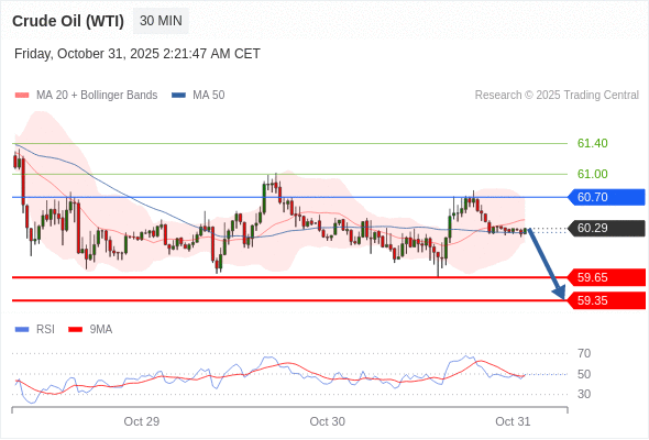 在 60.70 之下,看跌,目标价位为 59.65 ,然后为 59.35 。