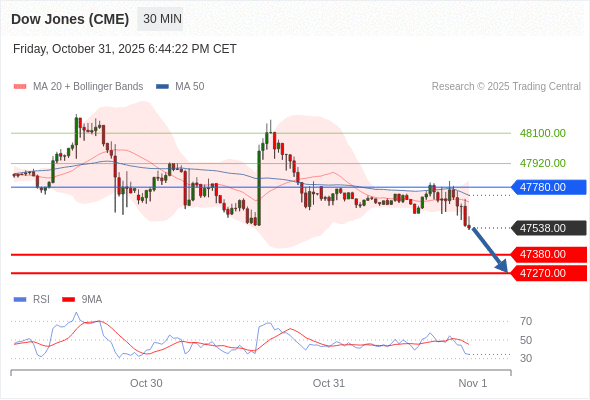 在 47780.00 之下,看跌,目标价位为 47380.00 ,然后为 47270.00 。