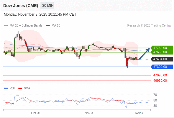 在 47300.00 之上,看涨,目标价位为 47660.00 ,然后为 47760.00 。