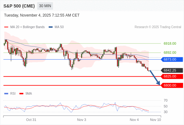 交易策略: 在 6873.00 之下,看跌,目标价位为 6825.00 ,然后为 6800.00 。