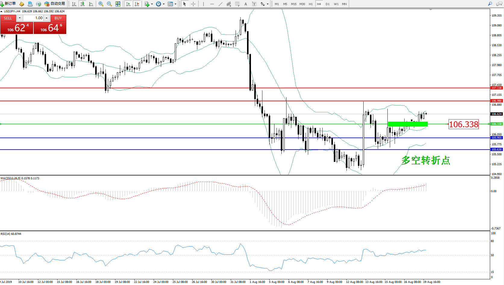 美元兑日元自上周一来持续陷入盘整蓄势行情,上方107关口阻力强劲,但下方也获得了充分的支撑。眼下,整体好转的全球风险偏好情绪,与各国央行的宽松预期一同构成了一组微妙的平衡力,令日元汇价陷入盘整;但高盛认为,当前的多空均势难以持续维持。因为杰克逊霍尔全球央行年会本周就将来袭,以美联储为首的各主要央行会借此机会澄清申明强化加大政策宽松力度的必要性,一旦如此,会令在宽松政策上已没有太多备选措施可用的日本央行变得更加被动;各国国债收益率的走低,会让低收益日债的吸引力重新上升,导致日元在汇市上更受追捧,这会把美元兑日元汇价再度推向105这一警戒线,并可能迫使日本方面在未来采取非常规干预行动。