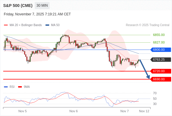 交易策略: 在 6800.00 之下,看跌,目标价位为 6720.00 ,然后为 6690.00 。