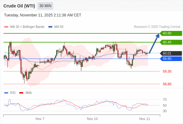 在 59.80 之上,看涨,目标价位为 60.45 ,然后为 60.80 。