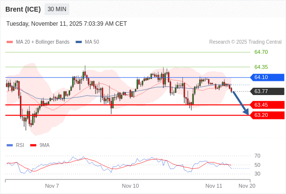 在 64.10 之下,看跌,目标价位为 63.45 ,然后为 63.20 。