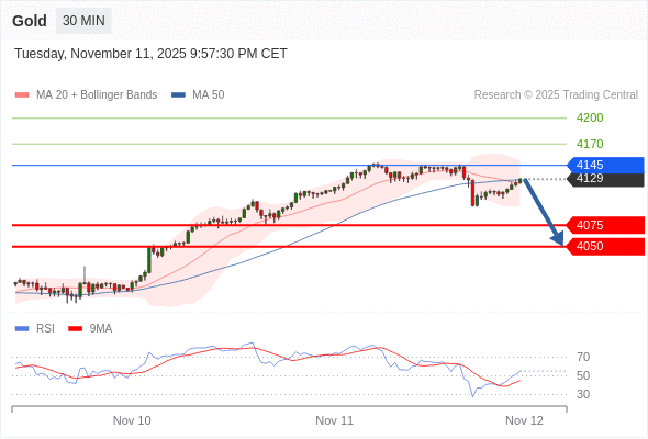 交易策略: 在 4145 之下,看跌,目标价位为 4075 ,然后为 4050 。