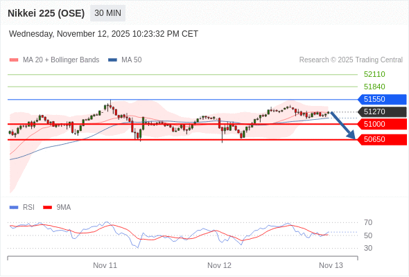 日经225股指期货 (OSE) 当日内: 短期关键阻力位在51550。