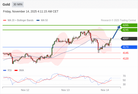 在 4170 之上,看涨,目标价位为 4245 ,然后为 4265 。