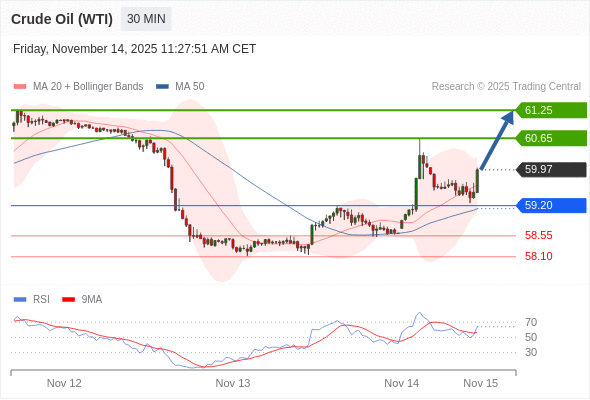 在 59.20 之上,看涨,目标价位为 60.65 ,然后为 61.25 。