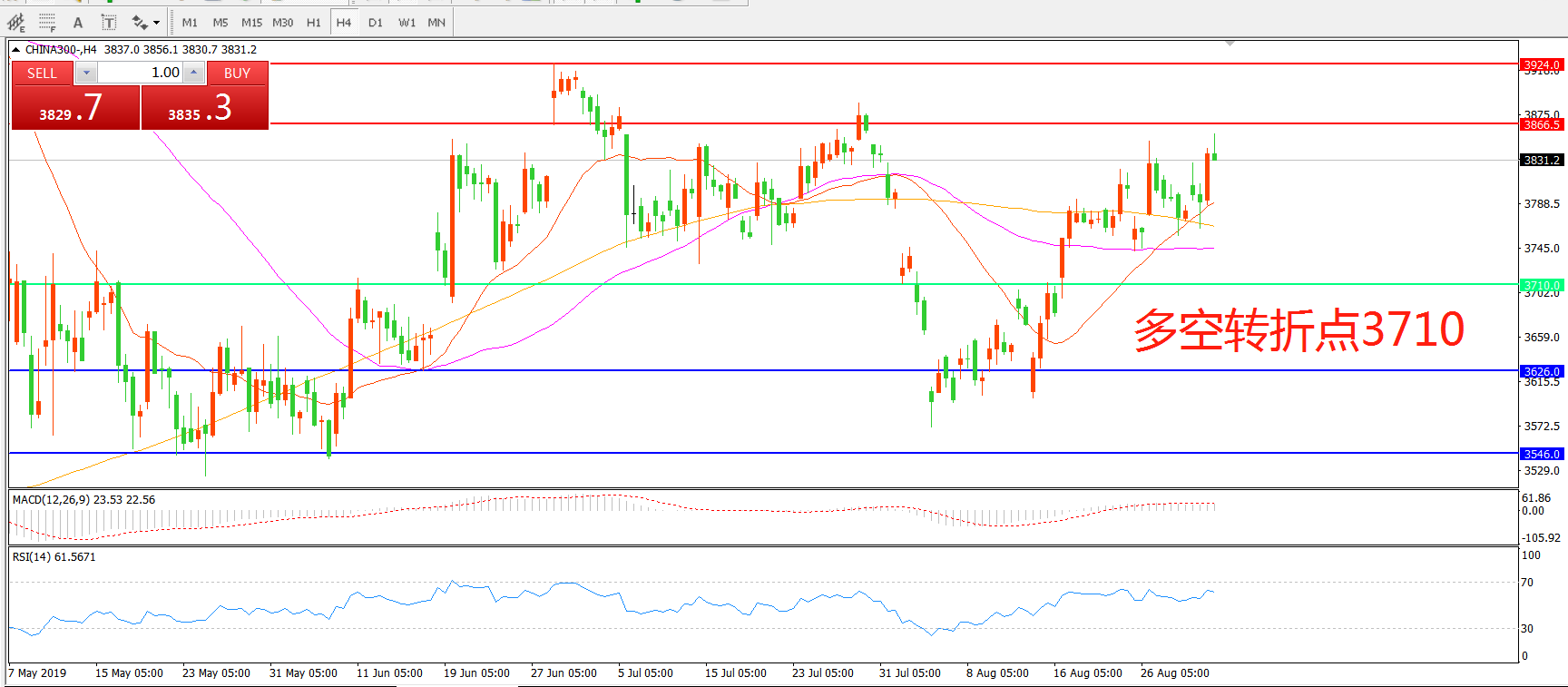 4小时图看,沪深维持高位震荡走势,21周期均线附近形成支撑后连续拉升,MACD红柱增加,RSI指标向上,日内延续上行概率较大。