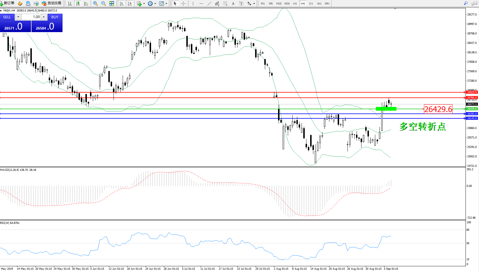 香港恒生指数9月6日(周五)收盘上涨175.23点,涨幅0.66%,报26690.76点;恒指表现反复收稳,在盘中曾一度下跌240点低见26283点,本地股绝地反弹后出现回压,是对市场构成震荡的原素,但受惠A股的持续走强,中资股继续有相对突出表现,内险股和内银股是目前的护盘推动主力。在全球央行倾向宽松政策的背景下,加上中美有望在10月初进行经贸高级别磋商,对于市场气氛都构成了提振作用。中国央行本周盘后宣布,为支持实体经济发展,降低社会融资实际成本,决定于9月16日全面下调金融机构存款准备金率0.5个百分点(不含财务公司、金融租赁公司和汽车金融公司)。