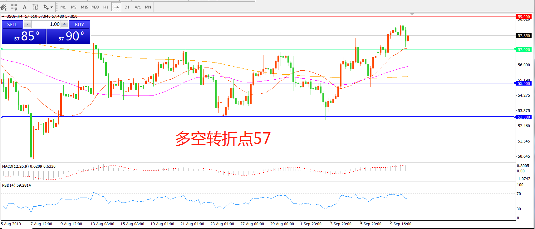 交易策略:在57.00 之上看涨,目标59.00 61.50