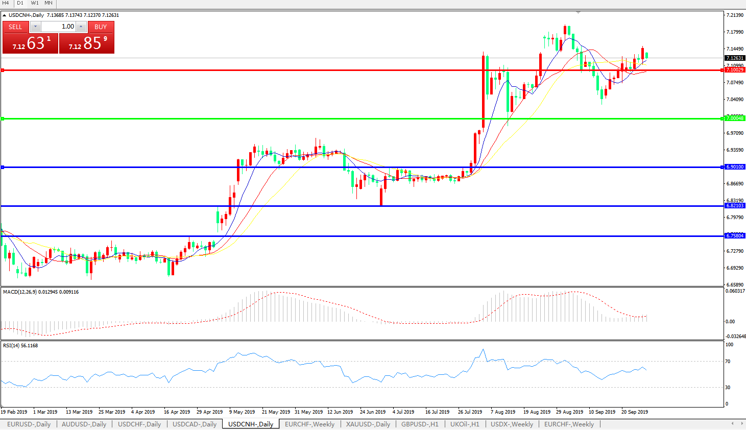 交易策略: 在7.0000之上,看涨,目标价位为7.1000,然后为7.2000。
