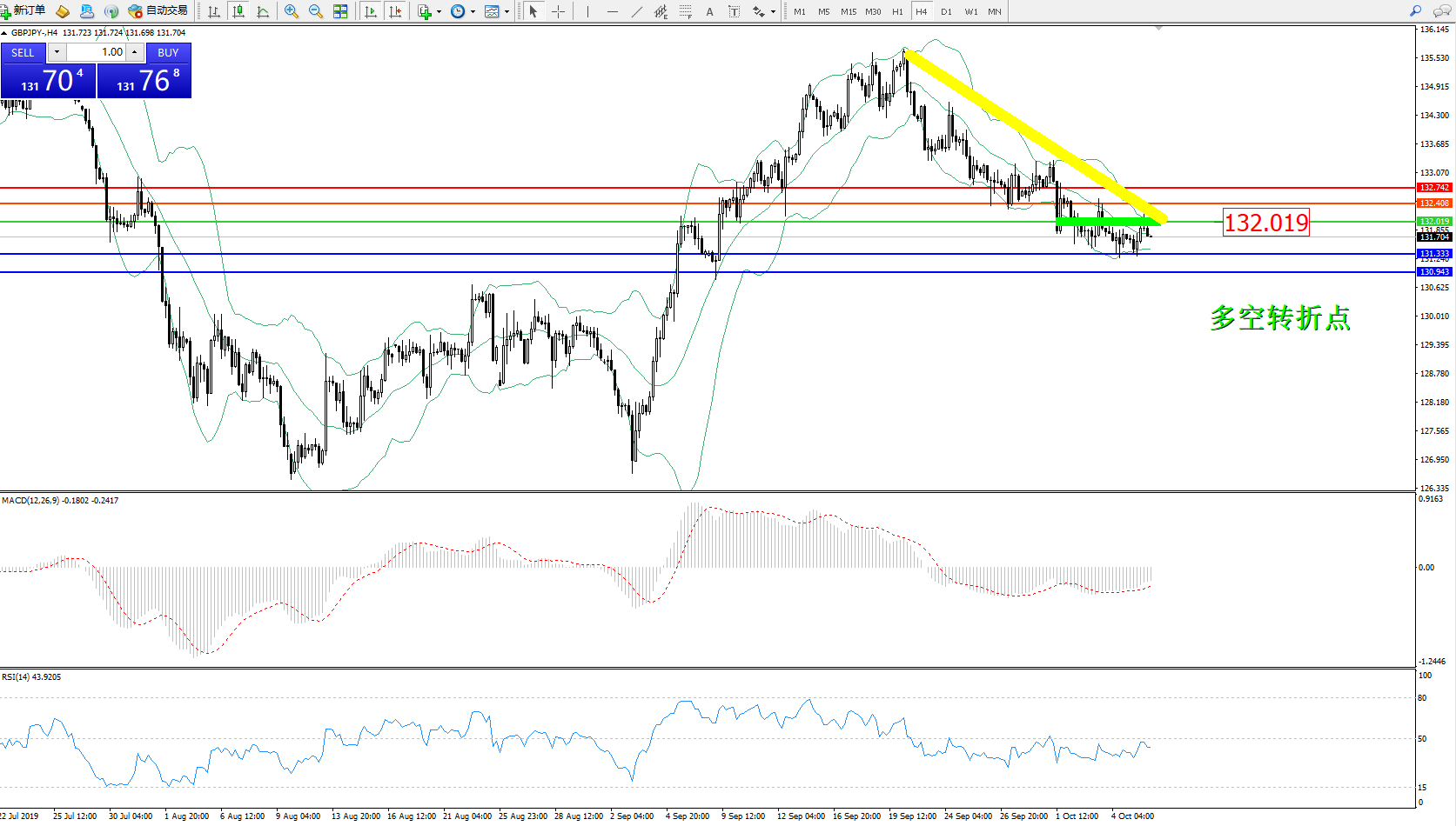 交易策略:132.019下方看跌,目标131.333、130.943