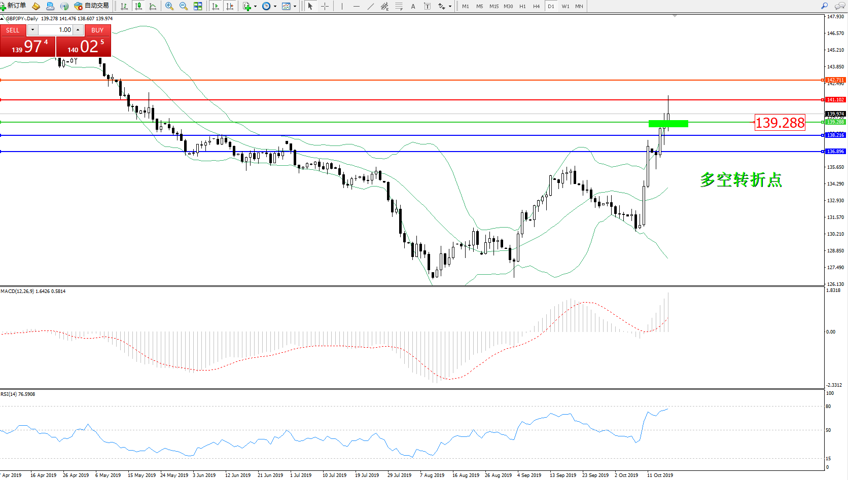 技术点评:多头动力紧贴在布林带指标上轨附近震荡拉升上行中,暂未出现多头疲软走势迹象,且布林带指标处于张口态势不断扩散中,MACD指标多头区域强势拉升走势良好,RSI指标处于80均衡线超买区下侧持续徘徊上行中;